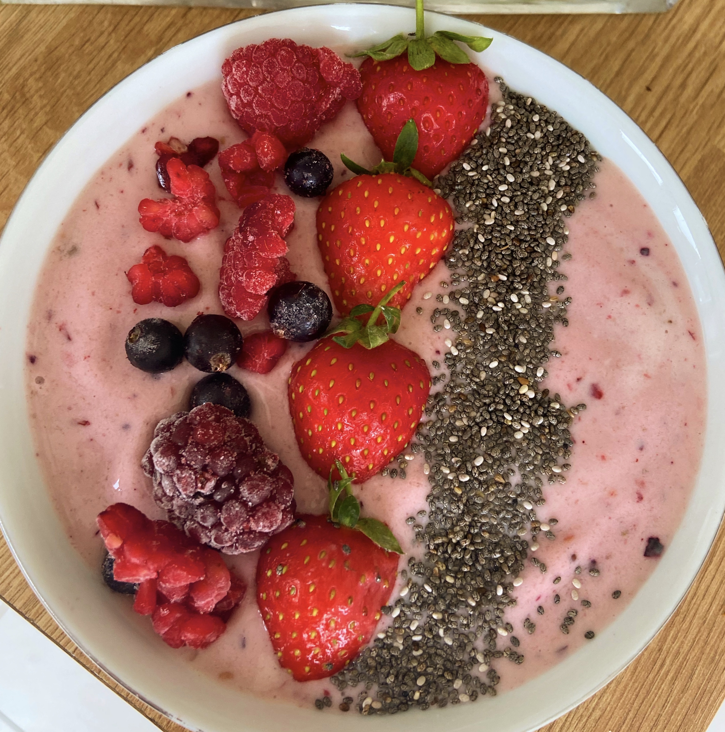 1) Blend all ingredients together. Serve and top with selected toppings.