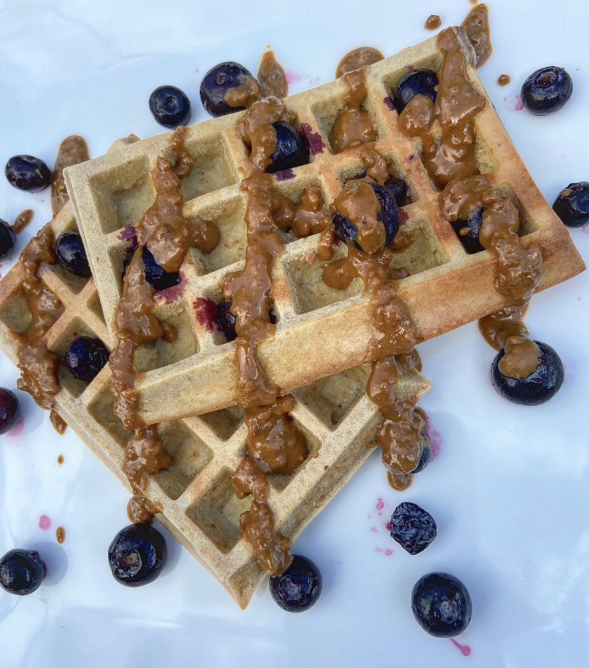150 for each waffle and this recipe yields 4 waffles. Brilliant brunch or breakfast idea, huts that sweet tooth but still a nutritionally balanced dish.