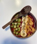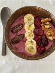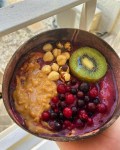 2) Mash the pear and mix in the milk, oats, baking powder and honey.